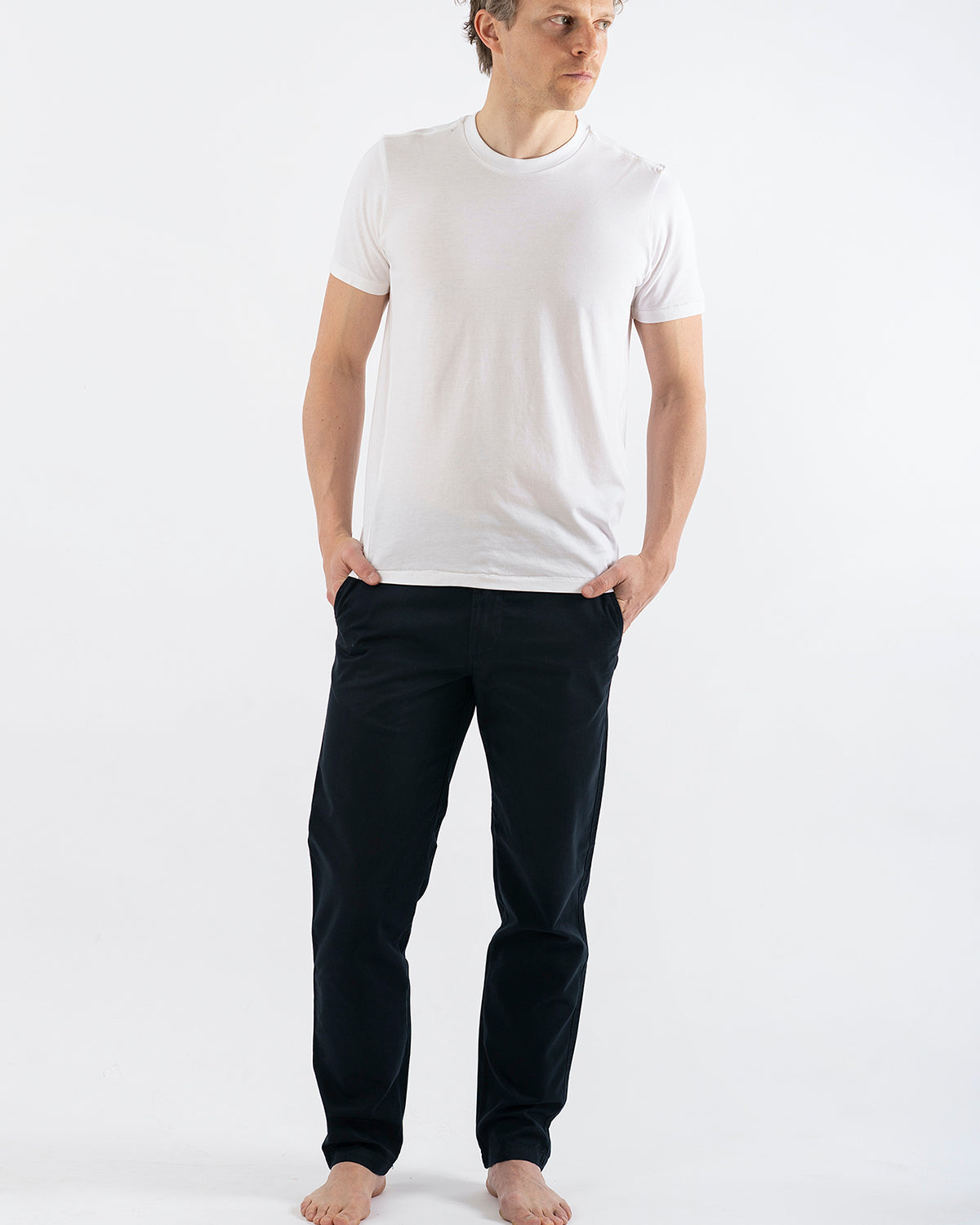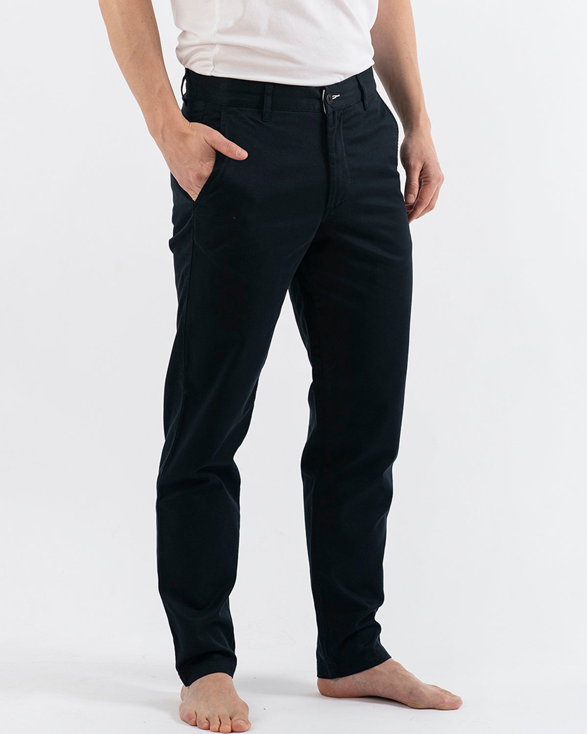 A classic chino version in a blend of Tencel™ and long-staple cotton. The material mix makes the trousers extremely comfortable, while also making you look well-dressed. Double front buttons, one visible and one on the inside.